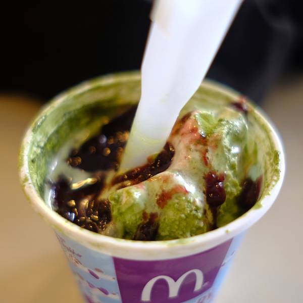 乘搭出租车去马六甲 的总站等待回新的大巴之余, 仍不忘吃~~~ 这个口味很特别, 新加坡没有!!! 珍多口味!哇哈哈!看起来有点恶。。。 绿茶红豆口味!哇哈哈!幸福感~~~哇哈哈!超级幸福!!!耶!马六...