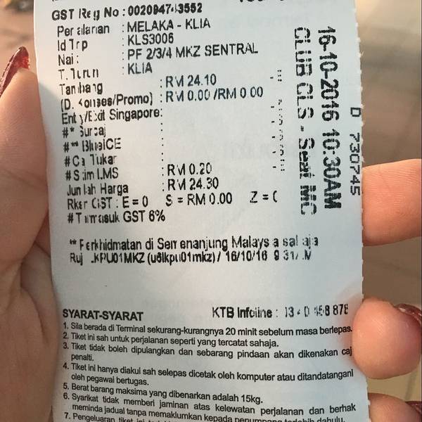 小时候喜欢学地理历史,所以来到马六来西亚一定要到出现率极高的马六甲看看~Phaik Ying帮忙在官网上买KL到马六甲的KLLL长巴票,然后打印出来,直接拿着打印好的车票订单去TBS车站取票。