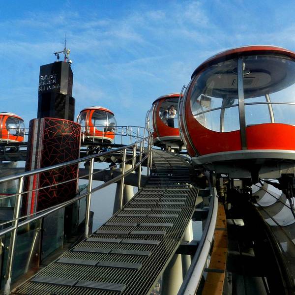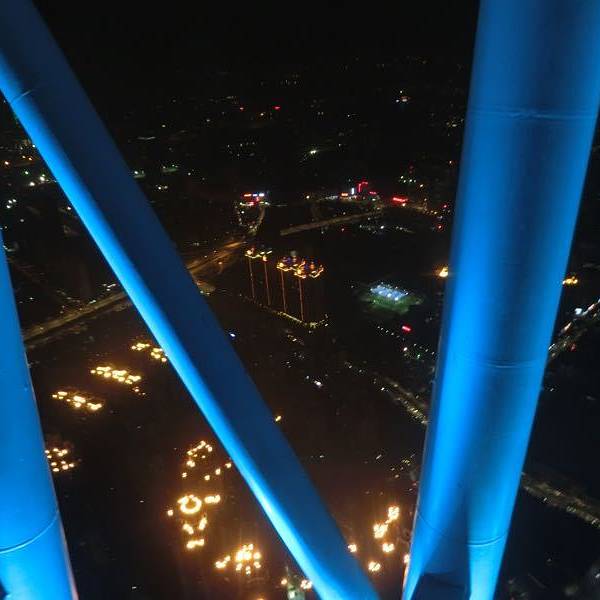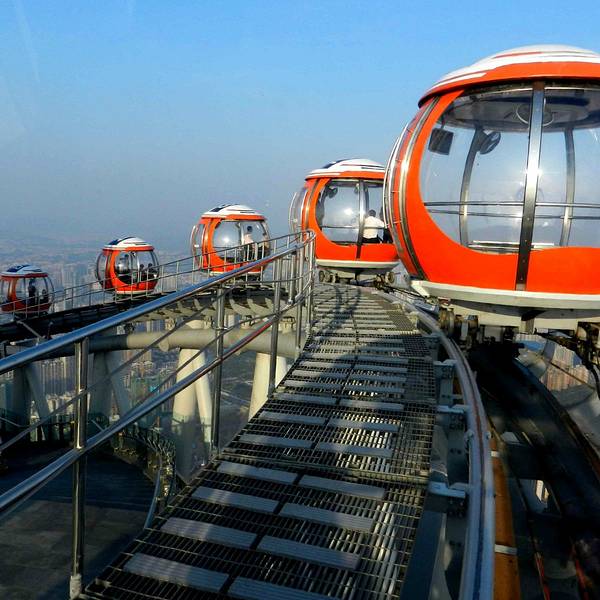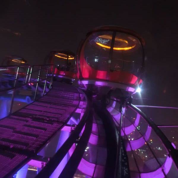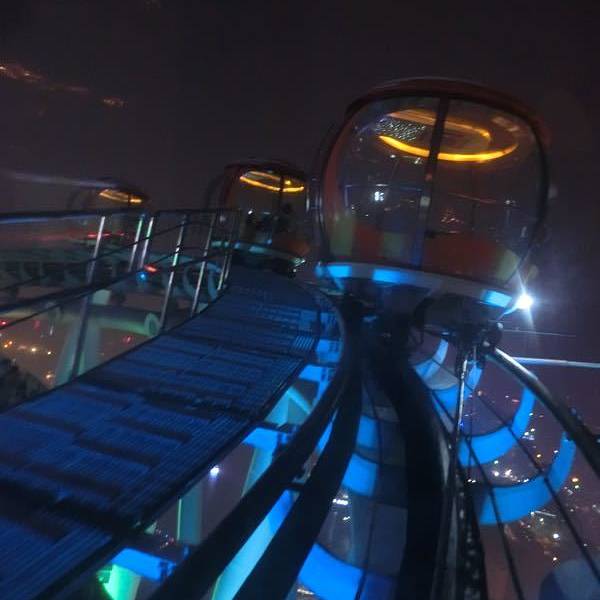 实用 所谓世界上最高的摩天轮其实一点都不刺激 一点都不刺激!好吧,还不是为了让你出钱去坐摩天轮再往上一层才是重头戏,450米高的观景平台,这里没有玻璃的阻隔,可也有一圈横向摩天轮的碍眼。好吧,还不是为了让你出钱去坐摩天轮。所谓世界上最高的摩天轮其实一点都不刺激 一点都不刺激!而且还是隔着玻璃才...再往上一层才是重头戏,450米高的观景平台,这里没有玻璃的阻隔,可也有一圈横向摩天轮的碍眼。好吧,还不是为了让你出钱去坐摩天轮。所谓世界上最高的摩天轮其实一点都不刺激 一点都不刺激!而且还是隔着玻璃才能看到外面的世界。加上每个仓只能进三四个人,我被分到和一对情侣在一起,各种造型自拍简直是醉了。你看,这是隔着玻璃往外拍的,就像镜头上蒙了一层雾。最喜欢的照片之一。 展开