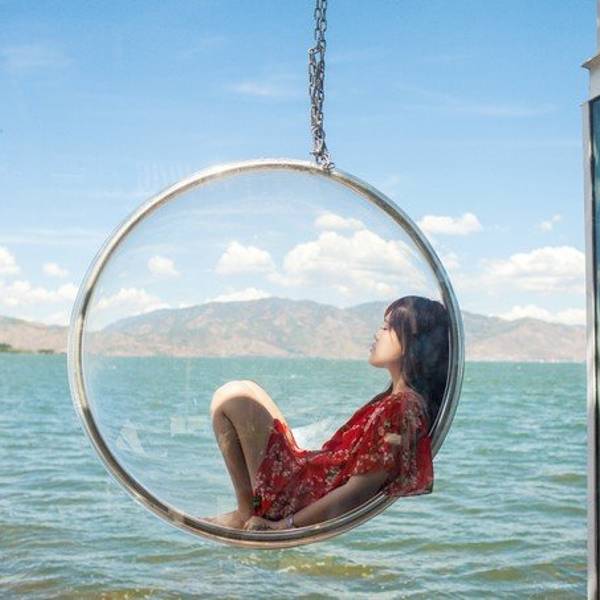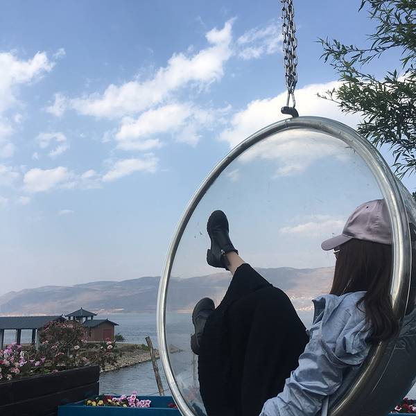 随后寻找小黄车车夫推荐的洱海网红拍摄地(其实就是路边靠海的店摆了玻璃球或者秋千) 环海西路或者...随后寻找小黄车车夫推荐的洱海网红拍摄地(其实就是路边靠海的店摆了玻璃球或者秋千) 环海西路或者环海东路的海边都有 找到后拍照10元/人 随便拍 效果全靠自身技术