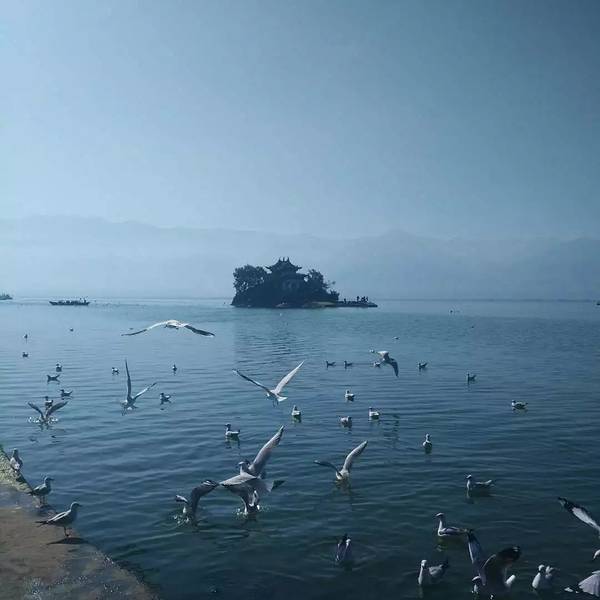 无风无浪 静静的在阳光照耀下 与苍山遥遥对望