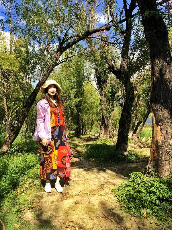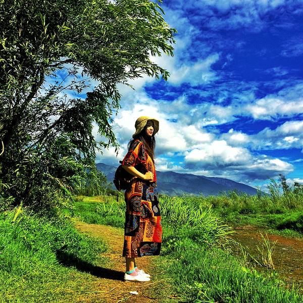 最爱的一张,仿佛田园诗,仿佛魏晋时期的踏春郊游,我戴着小草帽,背着小背囊,一副远足的样子。这是我唯一记得的地段的名字,因为旁边树立了村庄名字的路牌。