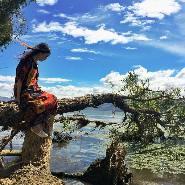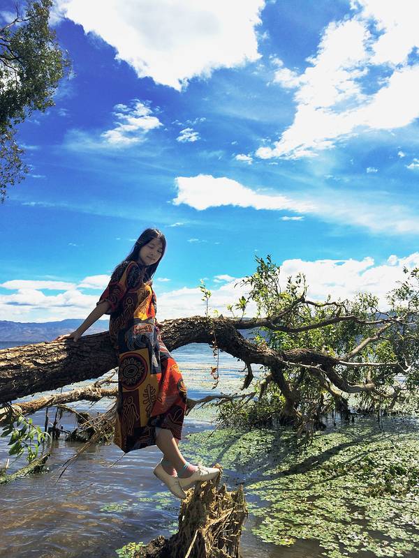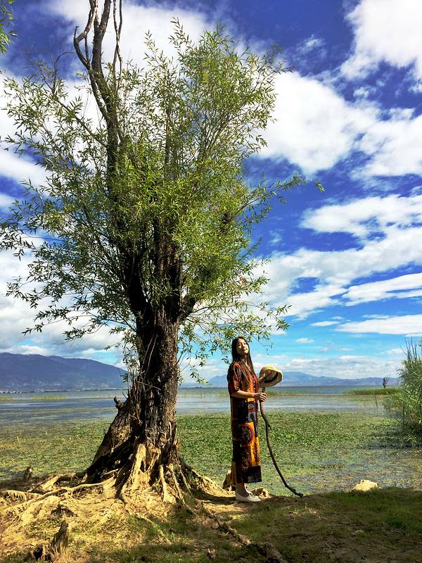 不知道在树先生的世界里,它们靠海错位迎风展示,正在诉说什么故事。前行,又停下。所见的一颗树先生,更是不得了,发展到直接投入洱海的怀抱。