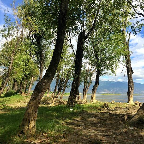 这一带或是滩涂或是海堤之处,疯狂生长的大树们,无一例外,都是歪歪斜斜,无一例外,都是向洱海靠近的姿势。