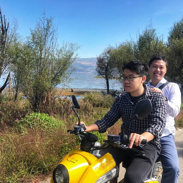 Tips:才村码头到双廊大约60公里,如果不考虑电的话,大约3、4个小时。一天来回没问题。但电要是不够就糟糕了,半路没电就歇菜啦。在去到一半路程的时候,由于体重原因,有一辆车的电池使用量迅速下降。