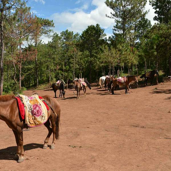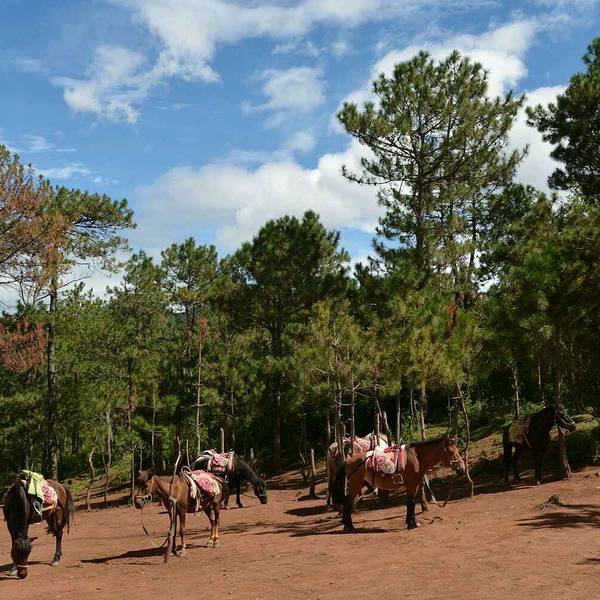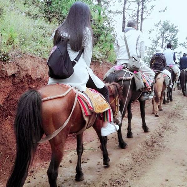 可以说,昔日的茶马古道,经过岁月的洗涤和时间的冲刷,显得沧桑、深沉!那些石板上面踩出的脚窝,每只就是一个故事!我们在做的就是走过你走的路。另外,友情提示一下哦,茶马古道不好走,不停的上山下坡,我们就按照赶马人教给我们的,上坡时身体前倾趴在马背上,下坡时身子后仰蹬紧马镫。虽然骑的像模像样了,可一不小心还是险些被旁边树干刮蹭下马!再有哦,这里很陡峭的,稍不留意可能就会滑下旁边的悬崖。保护好自己哦!经过努力,终于走到山上观景台了,看远处绿树白云映衬下的拉市海,怎么好像是在天上耶!偶然遇到旁边树林里有纳西姑娘和游客燃起篝火,跳起了纳西族的“阿哩丽”回程的路上碰到又一批踏上茶马古道的游客,聊了一会来丽江的感受也遇到了一些新朋友!慢慢的,我喜欢上这些矮脚的耐力很强很听话的滇马了! 展开