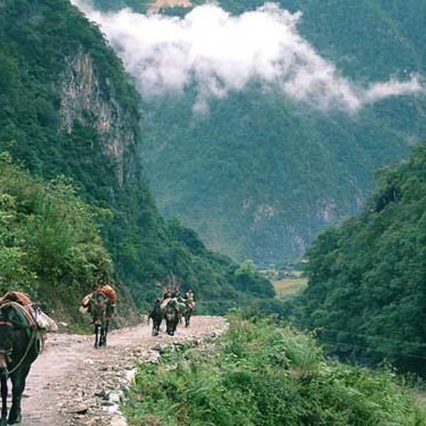 再有哦,这里很陡峭的,稍不留意可能就会滑下旁边的悬崖。就这样晃悠悠的骑在马上往前行咯。保护好自己哦第三天:我想走过你走过的沧桑----茶马古道