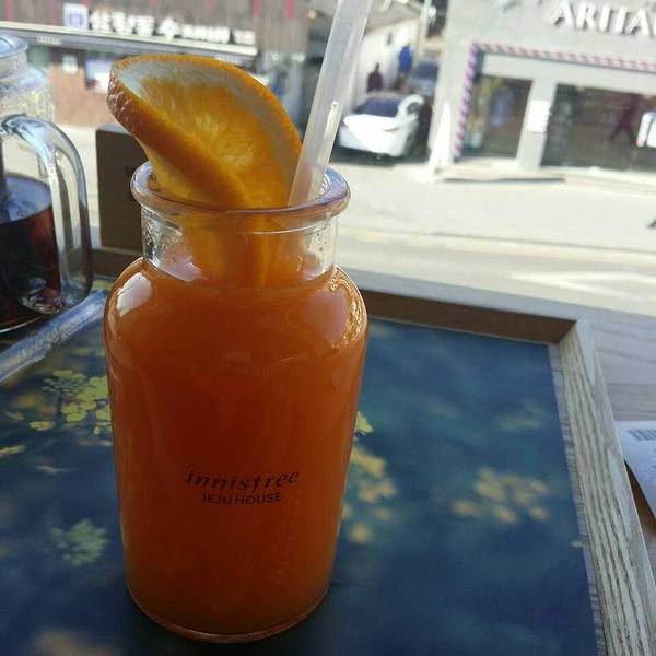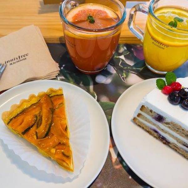 Innisfree JEJU House是悦诗风吟旗下的咖啡厅,韩国仅有两家,一家在悦诗风吟的发源地济州岛,另外一家就位于首尔三清洞,一楼是化妆品店,二楼是GREEN CAFÉ,三层还有露天座位。