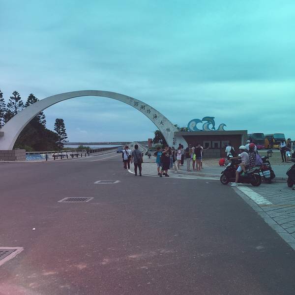跨海大桥其实就是一座桥,连接前方的道路,北环必经之地!拍照的人也很多!能想象天气有多热吗?北环:澎湖岛的北边游,北环的行程骑很久,路上有很多景点,我们可以随时停下脚步走走……,当然也骑到跨海大桥…...