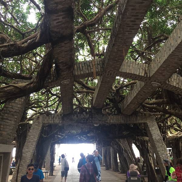 跨海大桥其实就是一座桥,连接前方的道路,北环必经之地!拍照的人也很多!能想象天气有多热吗?北环:澎湖岛的北边游,北环的行程骑很久,路上有很多景点,我们可以随时停下脚步走走……,当然也骑到跨海大桥……毕竟出来玩…防嗮!补水是很重要的!不然…生病了就完了,到处都有7-11便利超商,买水,吃东西,吹冷气,都可以!出来玩身体顾好!好了~说说出来玩的组合!不管是什么样的组合,双方最好都要会骑车!为什么呢!不是骑车的人会累,是坐在后面的会累!骑车当然也累,但注意力集中在骑车上面,可是后面的同一个姿势走久了,累哭!要是可以互相换换是比较好的~当然,谁规定2个人一定要租一台机车,土豪们也是可以一人一台!😄。大榕树:密密麻麻的榕树,其实这里就一颗榕树,我们找不到主根,其他像柱子一个样的根是气根!当下还是觉得不可思议的!