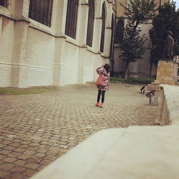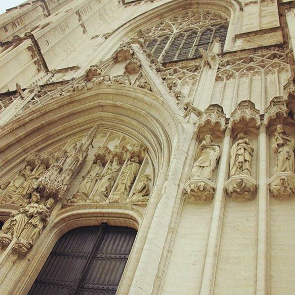 原本是没打算去往比利时而是直奔法国的,但是布鲁塞尔也不大,过门而不入也有点亏欠这张欧铁通票,反正没预定座位,要走要留也是全随自己心情,因此当火车路过布尔塞尔中心站的时候我便毫不犹豫地跳下了车。 只打算在布鲁塞尔待半天,没有酒店住行李也无处安放,在火车站转悠半天终是发现行李寄存处,但由于不知道怎样操作只好观望旁人。危难时刻绅士总是无处不在,旁边又有一个温柔的人耐心地帮了位高龄大爷半天忙,忙完瞅见我可怜巴巴盯着他又只好继续教我操作。待道过谢后就迫不及待地出来探索布鲁塞尔。 没有地图,没有事先做过功课,完全不知道从哪开始,于是决定凭感觉走哪是哪,走到饿了,再就地找个有WI-FI的小店坐定,待查完今日出行任务和返回火车站的路线再次出发,待到白天耍完再去赶从布鲁塞尔到巴黎的特快列车。 · 布鲁塞尔中央火车站大门正对着的方向便有座大教堂,只因它最显眼我便先朝它奔去,看见目的地了直直奔去不是我的个性,这样旁巷里藏着的宝藏搞不好就挖不到了,穿街走巷寻找惊喜才是正章。 不太懂建筑艺术,不想花大气力在研究教堂上,而且教堂作为百年不变什么时候来看总会耸立原地的建筑物,于我只是旁注,总会故地重游的。 于是东歪西拐胡乱穿行直到逛够了才正正地走向教堂方向,到了教堂底下,这点这地儿也没什么人啊,只好自己搞定。 把相机放在石栏上定了时往前走的片刻,脑海里就浮现出一转身回头相机已经不见的画面。不过还好,依旧没人经过,勉强与教堂的大腿合了个影。
