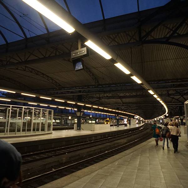 从布鲁日到布鲁塞尔我们上了一趟慢车,晃晃悠悠大概要快三个小时才到,列车员验票时好心提醒我们下一站下车可以换乘快车,如果我们下车换乘的话就不给我们验票了,我们感谢他的好心,反正也不赶时间,慢车也正好可以欣赏一下车窗外的景色。布鲁塞尔有三个火车站,相距都不是太远,我们从南站(MIDI)下车,走到酒店差不多1.2公里,我们在布鲁日拉箱子拉够了,于是坐了两站地铁,又走了不到300米到达酒店,后来发现其实北站离我们更近大概7,8百米左右,我们返回阿姆斯特丹时就从酒店走到了北站。