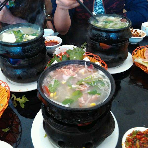 这是很有特色的一餐,是每人一小个的小火锅是用土陶制做的很有特色,小火锅有多种口味,可以选择不同的口味,吃起的感觉也大有不同。牦牛肉吃起和别的牛肉也有所不同汤很鲜美肉质很香。在高原能够这么好吃的我想...