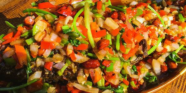 丽江束河古镇超有格调的餐厅,融入了当地特色菜与创新。如普洱酥排骨、纳西烤鱼、玫瑰炒蛋都是色香味俱佳的美食。餐厅环境小桥流水,舒适度一百分,配有歌手献唱,是一个慢慢体验丽江慢生活的好地方。
