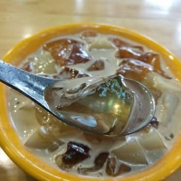 翻砂红糖:呈略淡的巧克力色,砂质细腻均匀,无明显分层,红糖味里混有白糖的风味~ 冰粉:在桶里呈微黄色,形态饱满有型的,有明显的假酸浆籽的植物味道~ 凉糕:小方块状,质地结实不duang,米香与碱香都...
