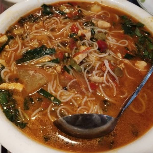 看了网上1000多条好评,想到离客栈也近,就走过来试试,到店晚上6点多,并没有坐满,楼上楼下也就7到8桌,点了一致好评的菠萝饭,香茅草排骨,杂菜汤,柠檬猪脸肉。 等了二十分钟才上来一个杂菜汤,就是红线菜白菜汤。猪脸肉还算入味。香茅草排骨炸得排骨都成渣了,却没有香茅草味,淡而无味。吃了快1小时,说菠萝饭没有了,隔壁桌比我们早来大半个小时,也告诉他们菠萝饭没了,更有一桌坐了半小时只上了一扎饮料,后来说很多菜都没了。我们也点了泰国山竹汁,也不懂为什么那么多人说好喝,浓浓香精味,不值。气氛无语,买单走人。
