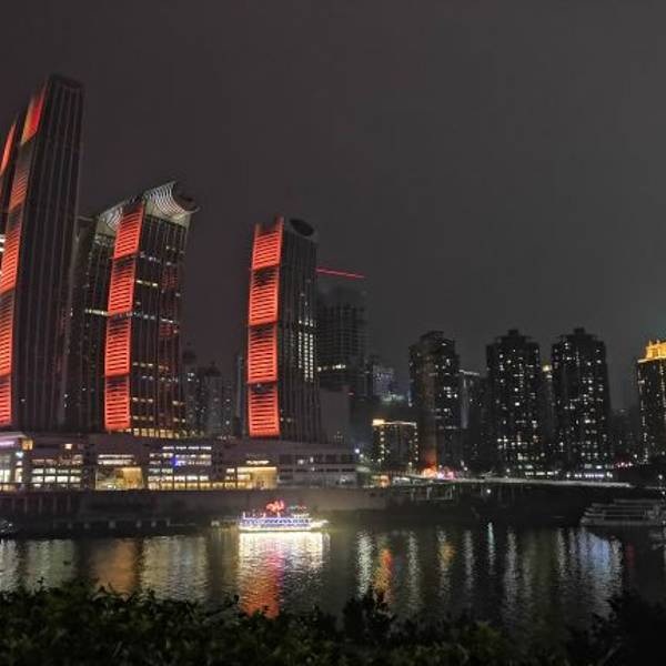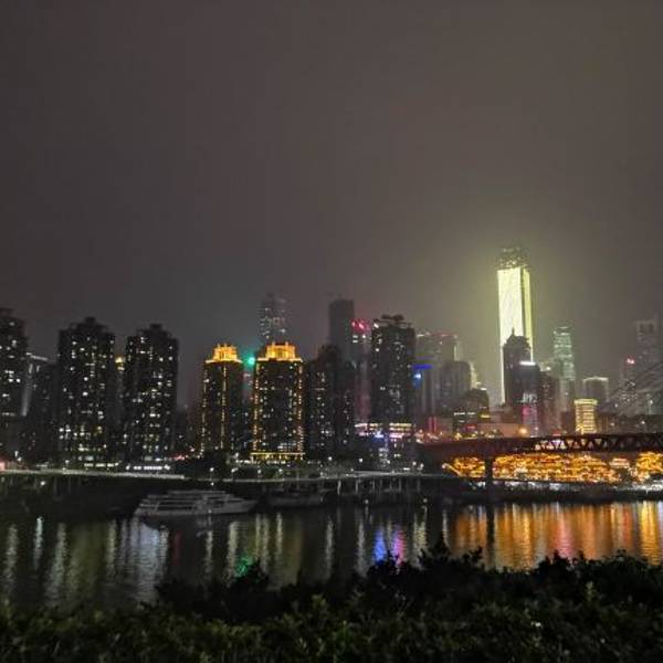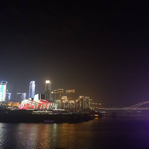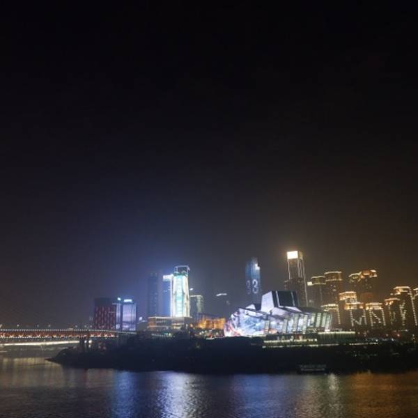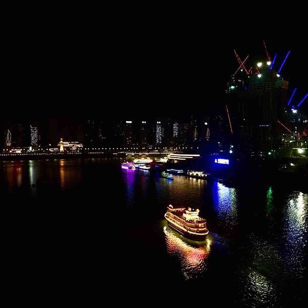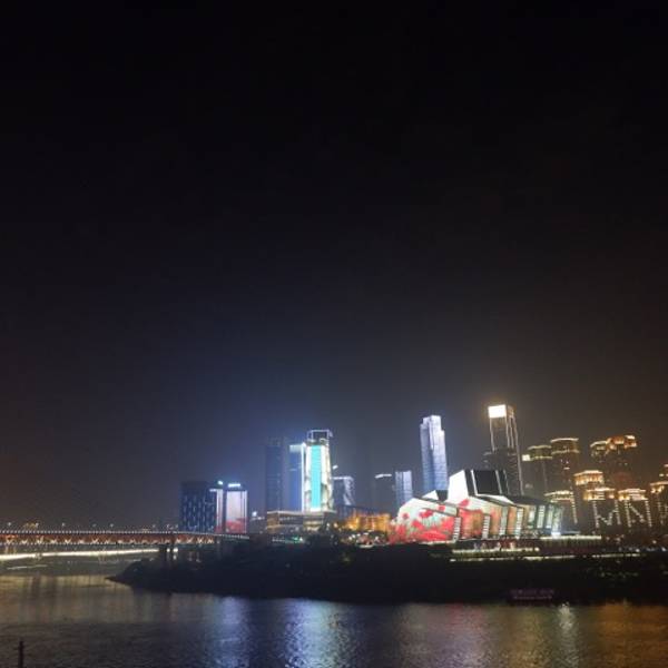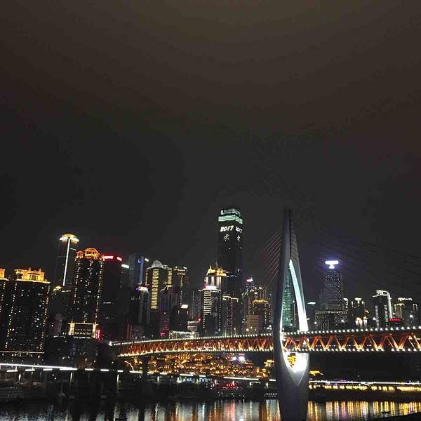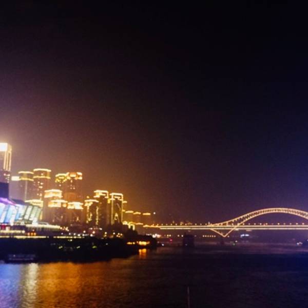 对岸是“解放碑”和“洪崖洞”,灯火阑珊,像夜晚的星辰,我是这么的渺小。