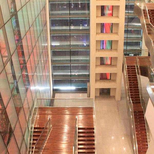 剧场的一层有家名为时光里的图书馆,这里除了售卖图书以外还提供咖啡饮品等等,人均消费30元,主要是打发演出前的等候时光。大剧院内部的楼梯均采用木质铺设,是出于音感效应的考虑。