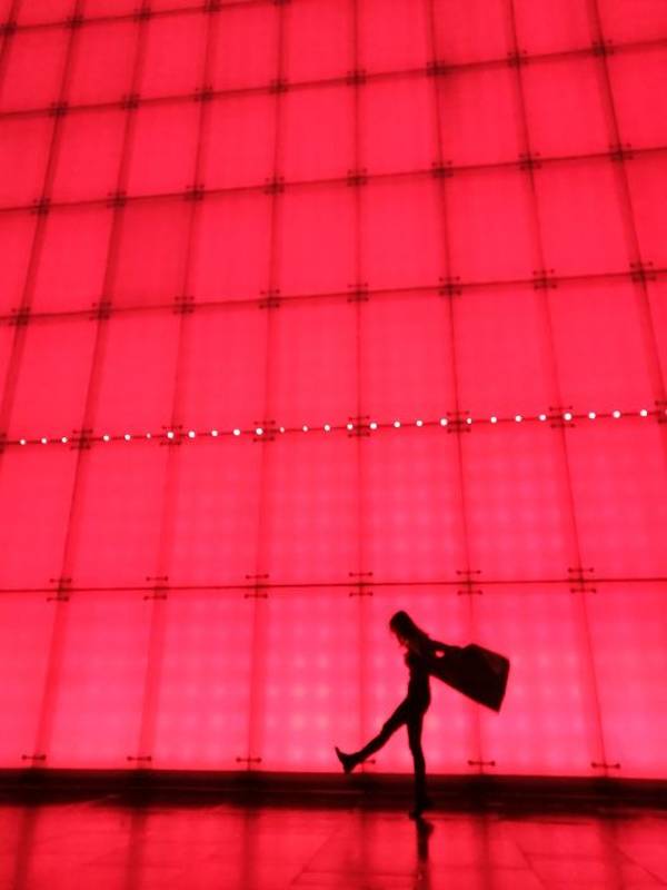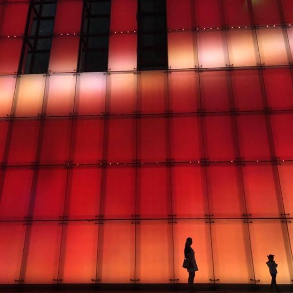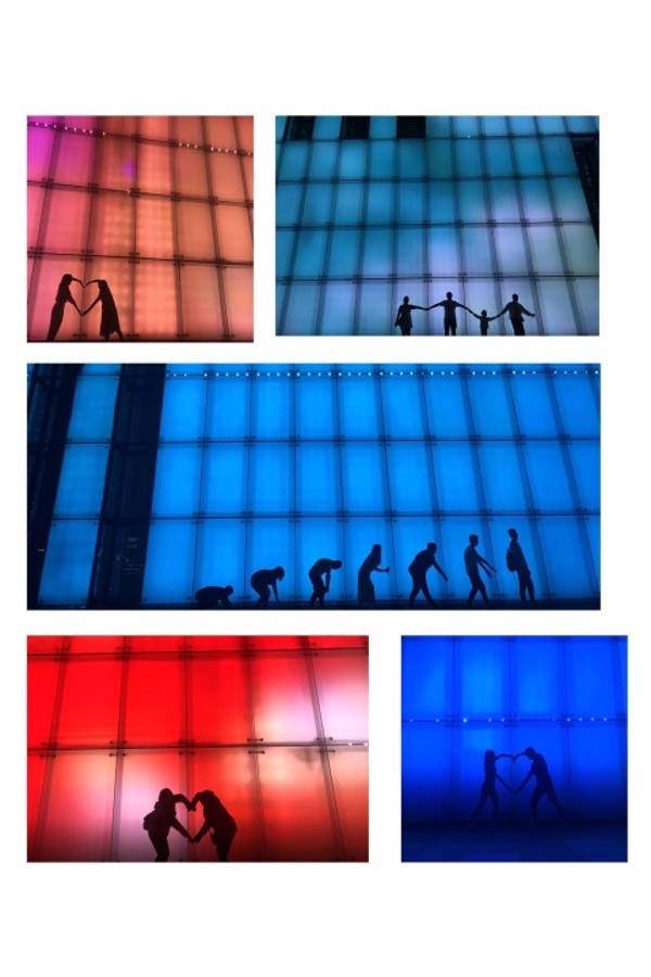 它,除了欣赏来自全国各地的剧场演出以外,夜晚在这儿还可以凹出各种各样姿势不一的美丽剪影,随着有机玻璃不同颜色的变化,凹照的影子若隐若现,美轮美奂………