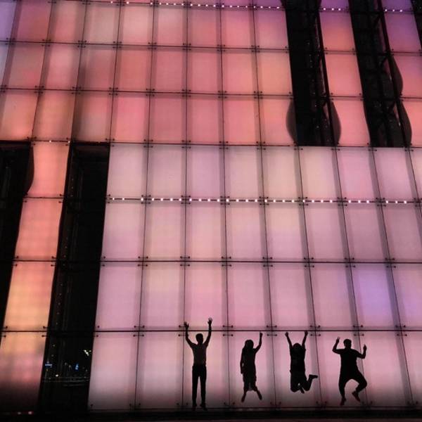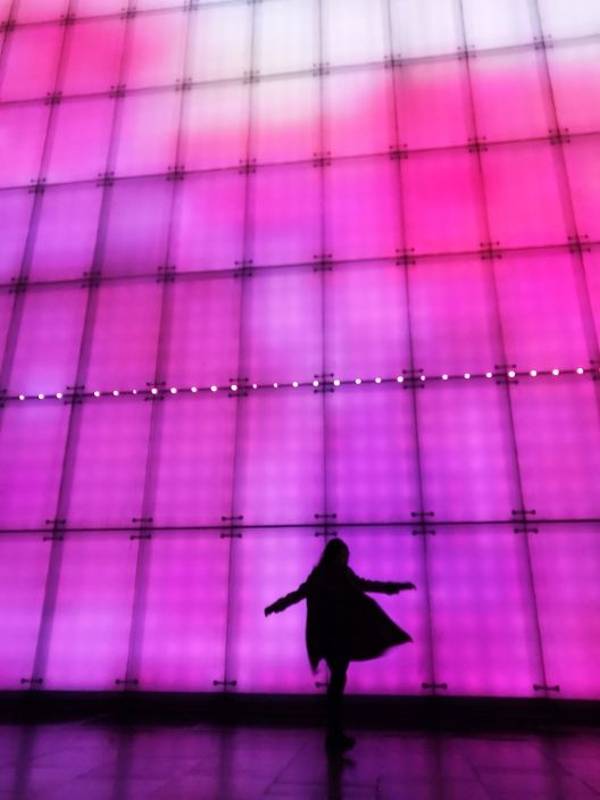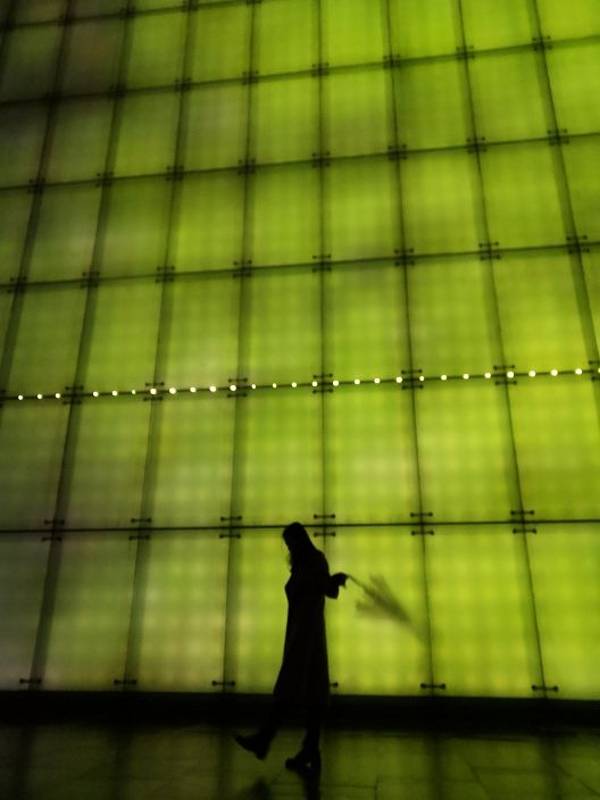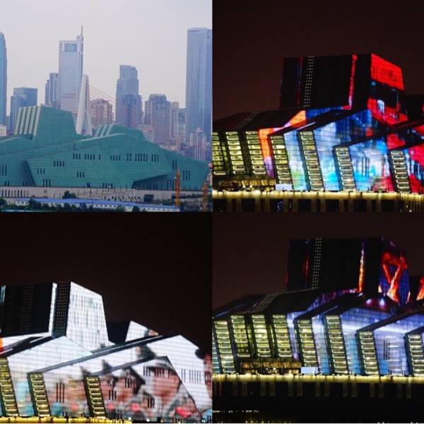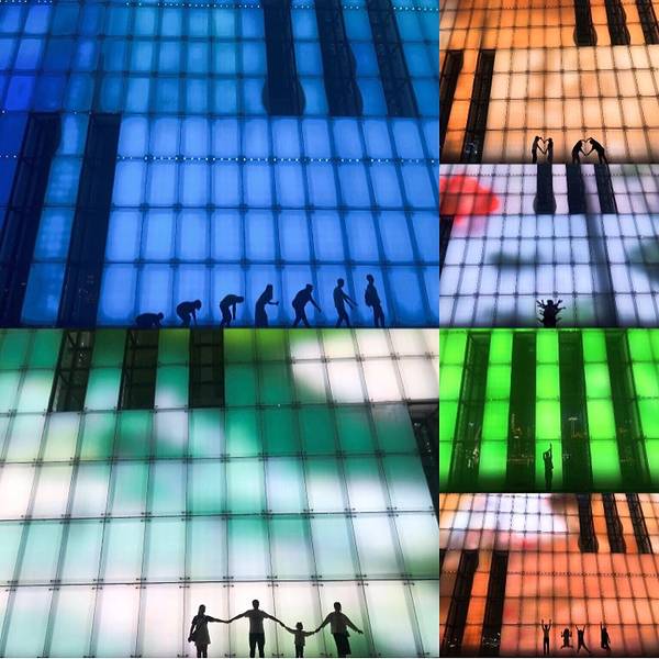 大剧院的墙,约晚上6:30—7:00开始灯光秀,一部手机,随便走、跑、跳,都是十分有特色的光影照。