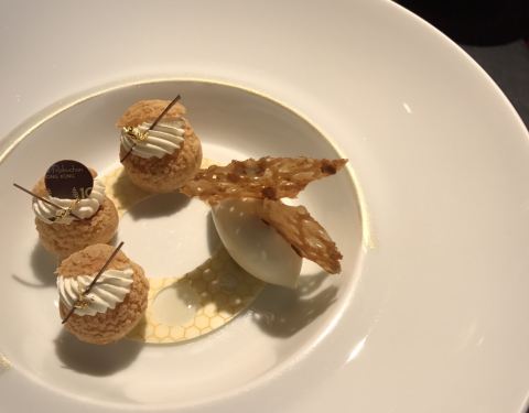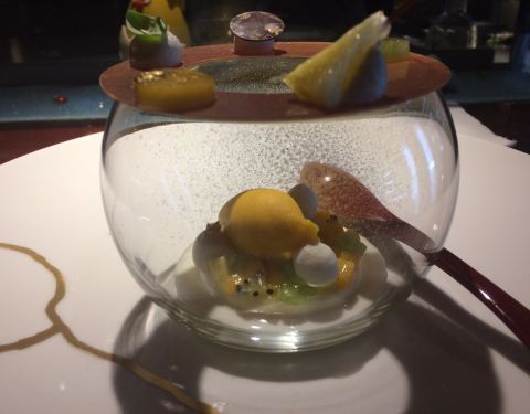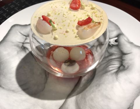 米其林三星餐厅,我觉得环境我很喜欢,有一点印象派的风格,点了他的招牌鹅肝,味道比我想象的要清淡很多,所以那个鹅肝吃在嘴里还是有一点不习惯吧,鱼丸松茸汤感觉有一点腻。