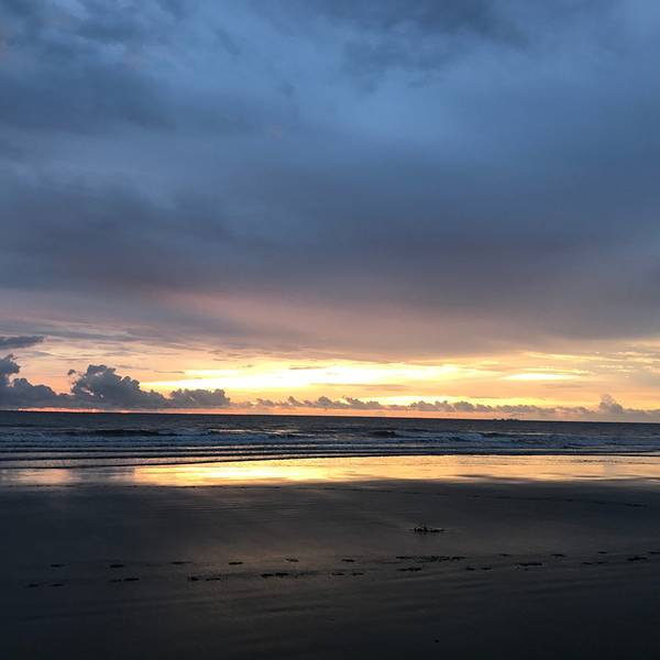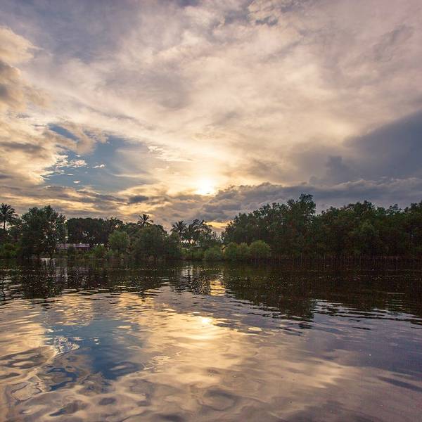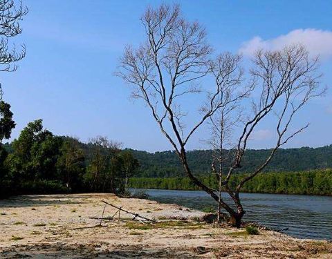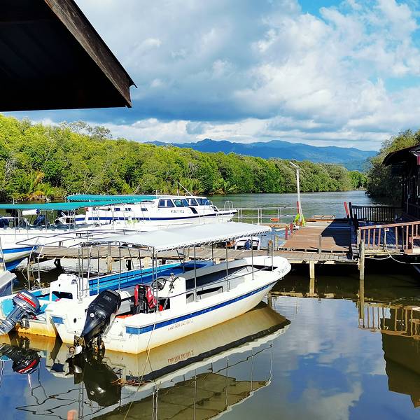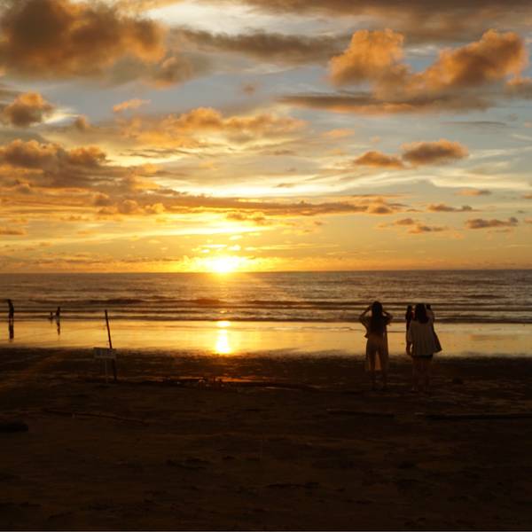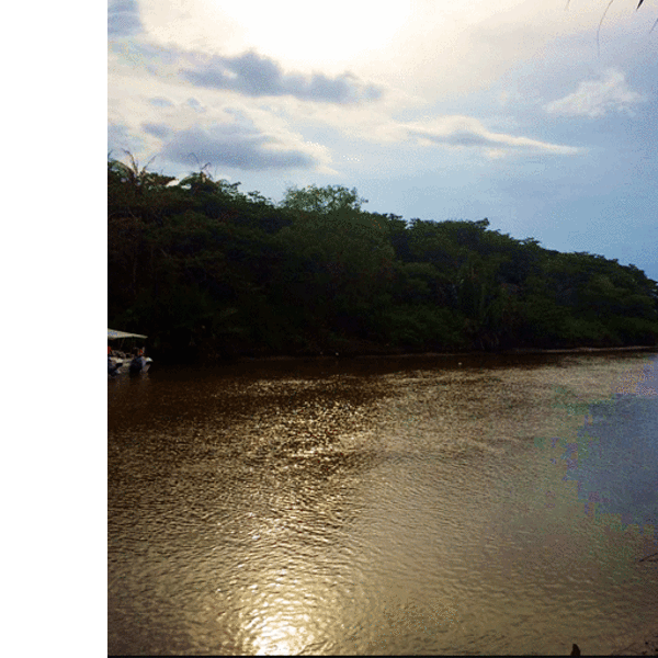 临近太阳落山,其余的船都往回驶去,我们的导游和船长却带着我们去到kawa的入 海口 ,第一次来到河流的入 海口 ,水流从窄窄的河道瞬间汇入广袤的大海,还是有些意思。这里也能看到日落,无奈乌云太厚,我们只看到小半只蛋黄,船停靠在入 海口 的沙滩,在这里玩到接近天黑,才启程回去吃晚餐。红树林的晚餐,鸡肉鱼肉、蔬菜水果和汤都有,味道一般般,吃完后驱车半小时左右,去另外一条河看萤火虫。趁着月光,我们的小船飞驰在夏夜的水面,耳边只剩水声虫鸣,清凉的风拂过发梢,心也跟着宁静下去。来到河道深处,导游闪起手中的灯,像是施了魔法,一瞬间岸边的树梢都一闪一闪亮了起来,我们惊叹不已,好久好久了,再也没看到过仿佛只属于童年的流萤点点,但是一想到它们生命却只有五天,我突然间有些伤心。