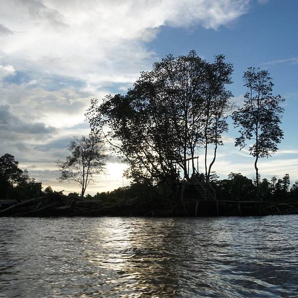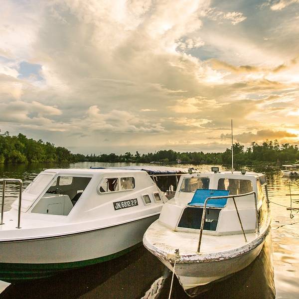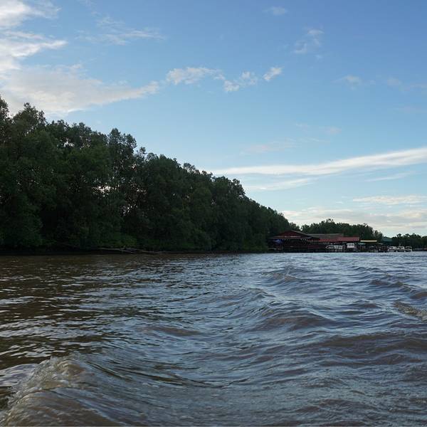 带着一览“污猴子”雄风的期待,我们乘着快船出发了,清凉的风呼啸而过,快船劈开河水在身后划出一波波水花,惬意极了。船越往里开河道越窄,当行到某些水域,站在船头的导游会示意船长把船停下,因为在岸边的树梢上,也许可以发现长鼻猴的身影。