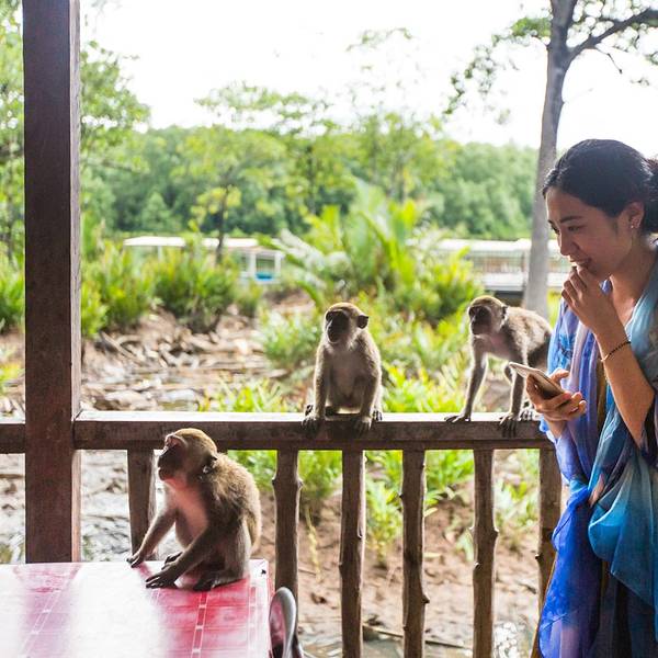 接下来的就是游船围绕红树林游览看长尾猴,导游告诉我们红面的猴子现在季节不对,很难看到...美人鱼岛后我们直接出发去Kawa红树林