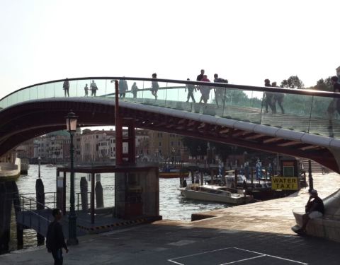 这是一座现代造型的桥,对威尼斯这个城市来说,就是一个造型很特别的桥了这是一座现代造型的桥,对威尼斯这个城市来说,就是一个造型很特别的桥了。桥连接着威尼斯火车站和长途汽车站,算是一个交通枢纽地区了。
