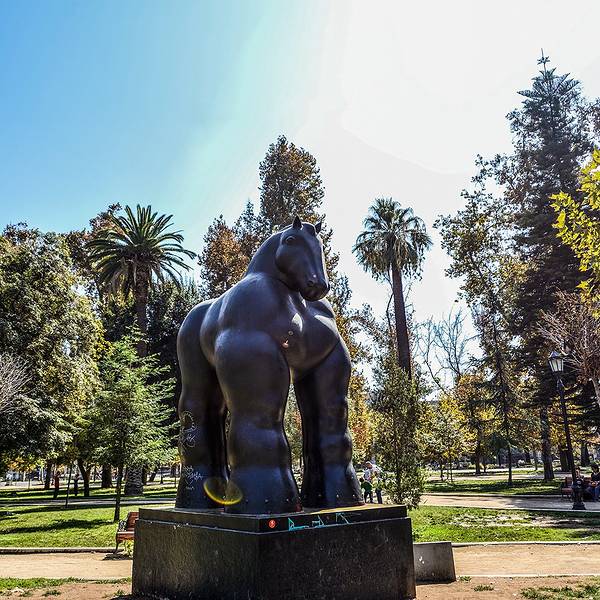 一出门,旁边就是智利国家美术馆,近水楼台嘛,我这个博物馆迷肯定是不想错过了博物馆门前的巨脚马雕塑,要是真有这样的马,心想骑在上面,会是什么感觉啊,肯定很好玩。美术馆大厅很喜欢这副画,初看有种凌乱的...