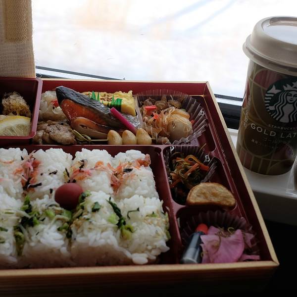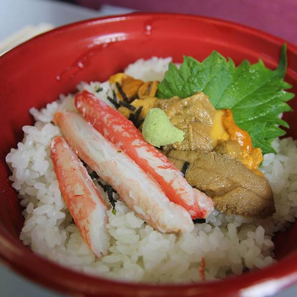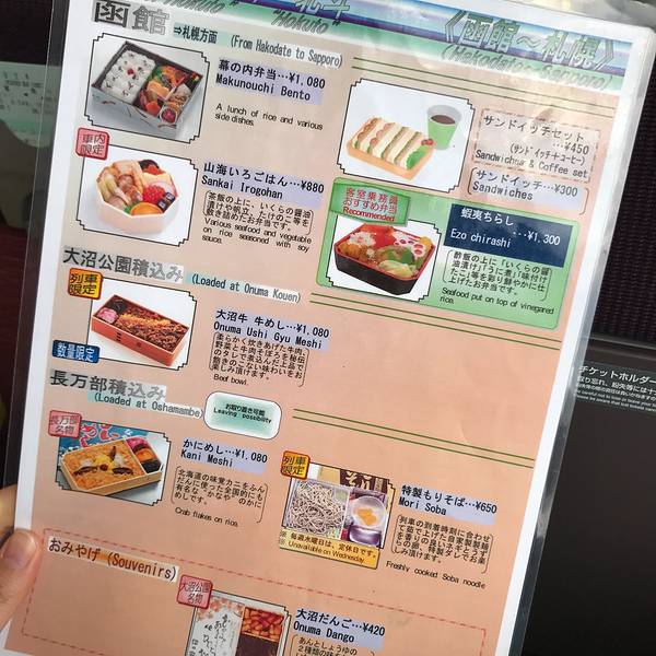然后就在站内超市买东西,买啊买啊,收银员动作也很悠哉,我也很悠哉,还好小伙伴一看时间!还有5分钟就开车了啊!!!赶集赶紧,收银员一下子速度也提升,十几秒搞定付钱就冲去坐车了。上车第一件事,先吃海鲜饭...然后就在站内超市买东西,买啊买啊,收银员动作也很悠哉,我也很悠哉,还好小伙伴一看时间!还有5分钟就开车了啊!!!赶集赶紧,收银员一下子速度也提升,十几秒搞定付钱就冲去坐车了。上车第一件事,先吃海鲜饭,以免不卫生,但素!!!这大概是我在日本见过,实物和样品差别最大的一次吧!!!索性海胆是真的新鲜,也就算了。