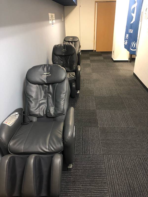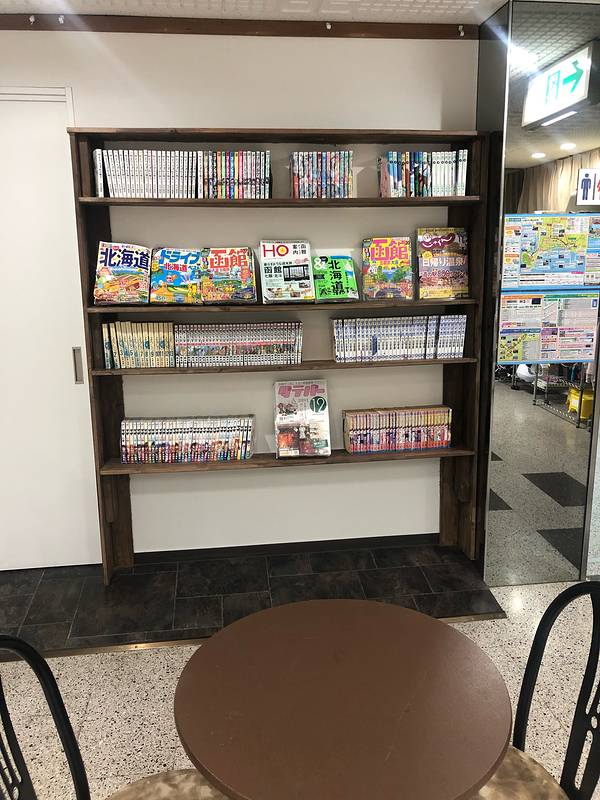 早上十点多的jr 十二点半到达函馆站 七层有免费的温泉泡汤 以及 按摩椅 迷你房间 设施陈旧