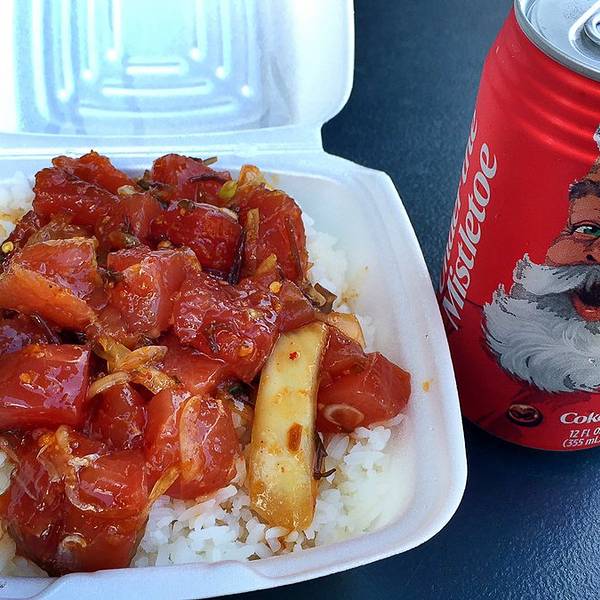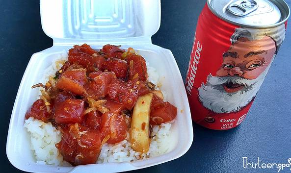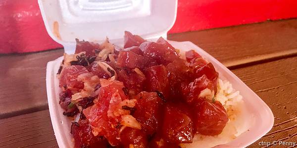 - 跑了十几公里特意来看看尝尝。猫途鹰的评价是夏威夷第一美食。不错不错。也就是不同口味的金枪鱼盖饭