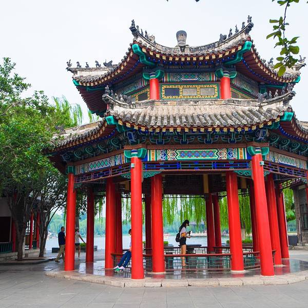 历下亭四面临水,绿柳环绕,挺拔端庄,古朴典雅,红柱青瓦,八角重檐,是一座轩昂古雅的木结构建筑。小伙伴为了拍...湖心岛是山东省济南市大明湖中央的一个小岛。是大明湖诸多导中最大的导,历下亭就在这个小岛上。