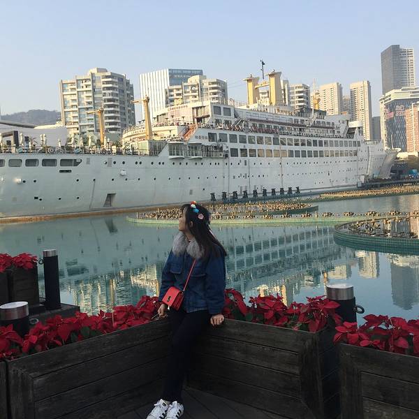 出发看大海吧,天天渔港是搭乘丽星邮轮的地方~远方的邮轮很容易可见到~ 早上de广州南高铁带着背背龙&车哩龟出发看大海吧~~~