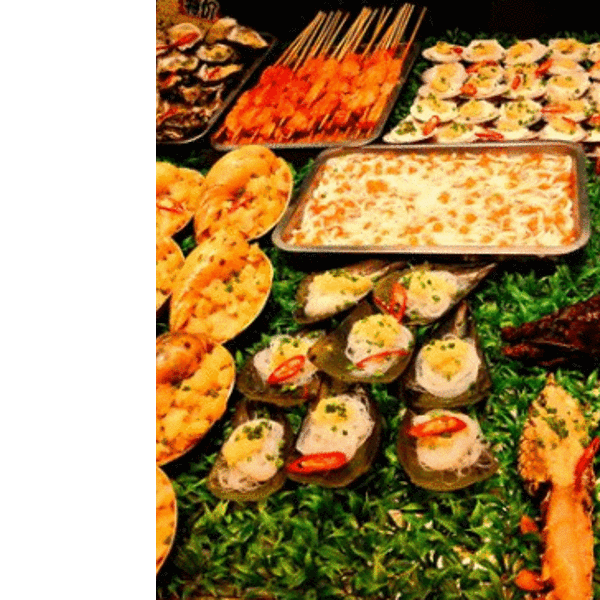 之后就返回酒店,没想酒店边上也都是美食。晚上也热闹十分。