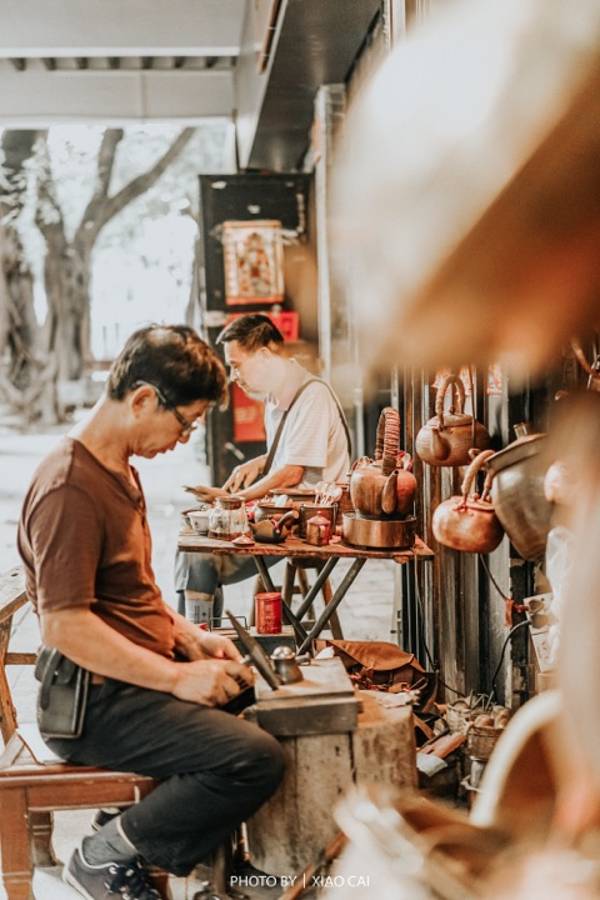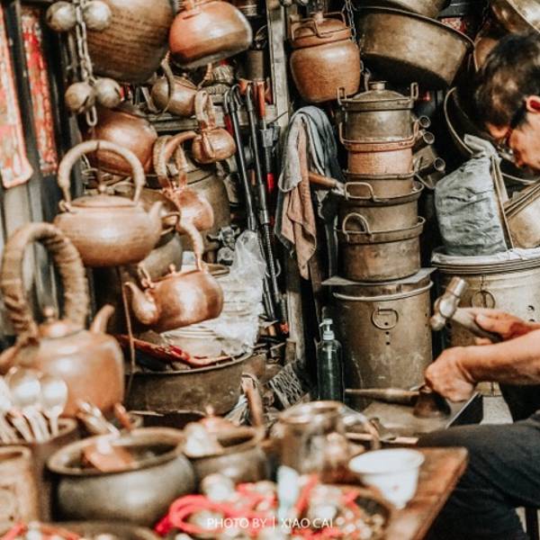 从恩宁路一路走来,不远处就能听到前方处传来的“铛、铛、铛......”的声音,格外清脆悦耳,走进一看原来是...伟兴铜铺位于广州拥有西关骑楼建筑精髓的恩宁路,八和会馆附近,也是这条路上唯一的铜制品小作坊。