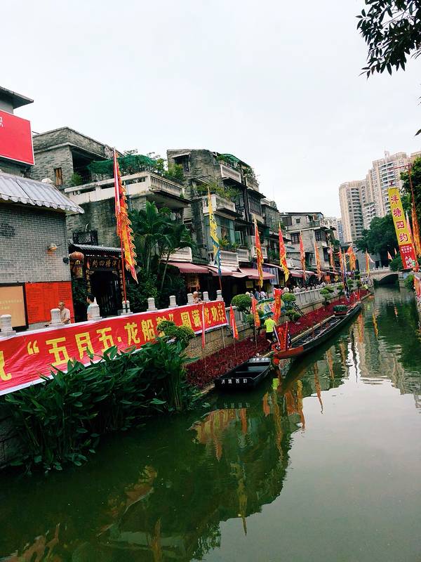 到 天台 则视野非常开阔,很有港剧 天台 的感觉,并且有居住的人家会把 天台 布置的像个小花园,甚至种了了些鸡蛋花的小树。经过了一个骑楼。和海口的骑楼老街有一点点相似。这边的特别之处在于一面是洋楼,一面又是南粤民宿。视觉上看还是蛮有意思的。因为正值端午节,龙舟也要准备起来了。这边有人在整理船只。