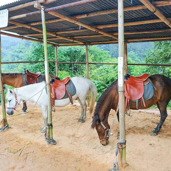 景区有骑马上山;骑到半山腰单程70元,骑到山脚单程40元。但我们去的时候,并没有看到一匹马,也没有马在休息。景区也是不能骑自行车上山的,只能徒步。