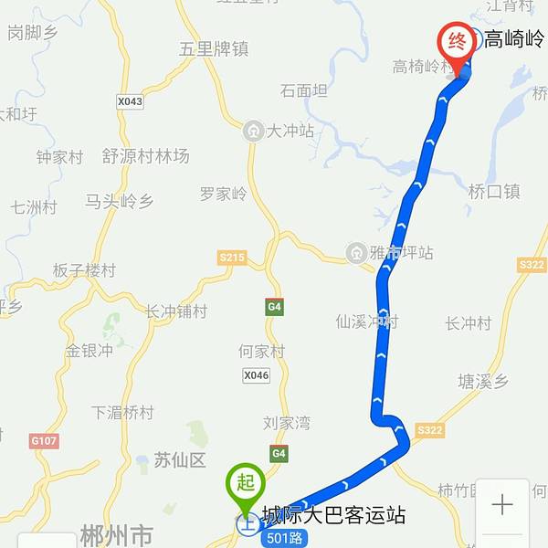 先在公交站附近找个店吃午餐,记得吃饱一点,因为下午的消耗量比较大~午餐过后,回到道口站,坐16路公交到郴州城际大巴客运站,是16路的终点站。行程约30分钟。郴州公交很便宜,1元。到达城际大巴客运站后,找到售票厅,买去永兴的车票,501路。这一点让我觉得奇特,明明是城际大巴,去的是其他县,但又和普通公交一样的车,而且还有线路名为501,票价也很便宜,¥5。跟司机说去高椅岭,在“杨冲土菜馆”下车,当然最保险的是自己打开地图导航,定位“杨冲土菜馆”,快到的时候提醒司机,免得因为人多司机忘记了。在501上大约40分钟能到高椅岭景区。一路从郴州市区到郊外再到山区,风景不错。并且对郴州一个很大的感受是,环境很好,空气清新,而且也不拥挤。