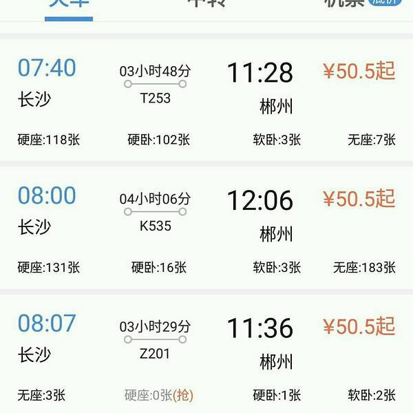 最好中午之前到达郴州,那么时间合适的有四趟车。票价便宜,¥50.5。郴州站还是挺小的,而且有点年代感😂