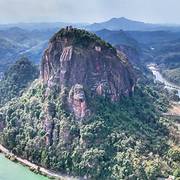 飞天山位于郴州市苏仙区,地跨桥口、许家洞、五里牌三镇,处于资兴市和永兴县之间。风景区由九寨、四坦、三庙、二江、一温泉和一古镇等景区景点组成。