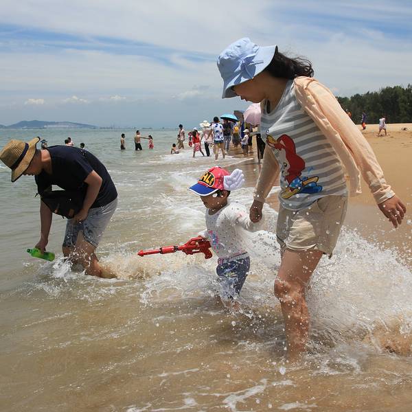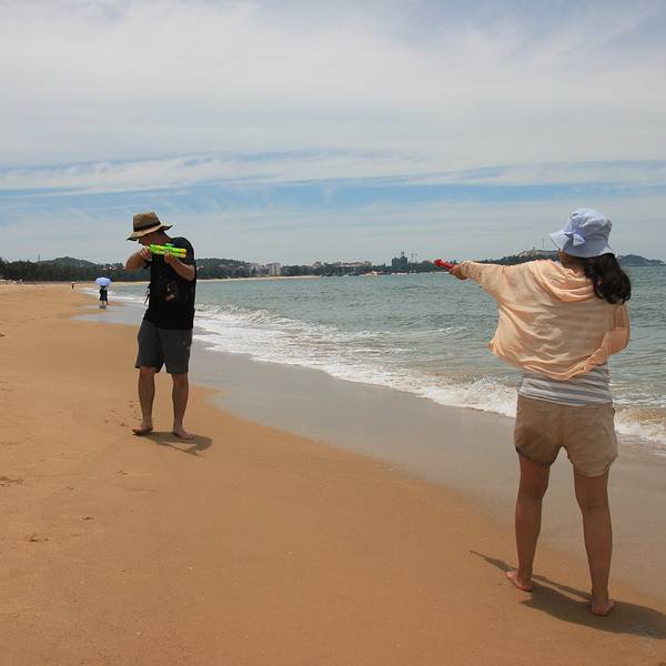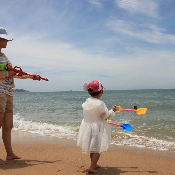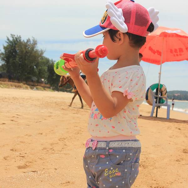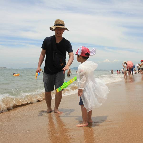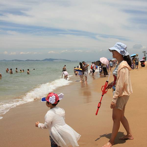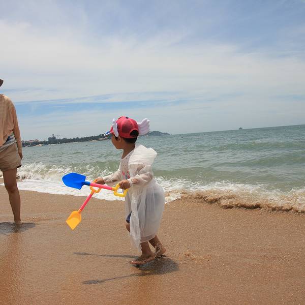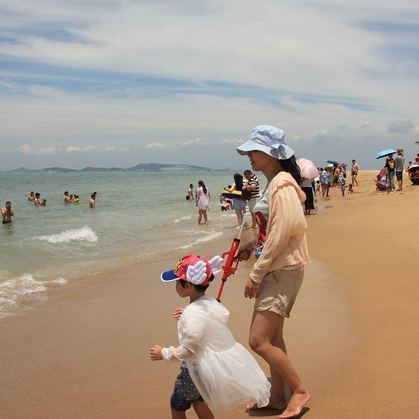 春秋之间,特别是夏天,观光消暑的游人纷至沓来,尤其是精力充沛的青年人。介个小女孩的背影有点霸气哈九宝澜黄金沙滩