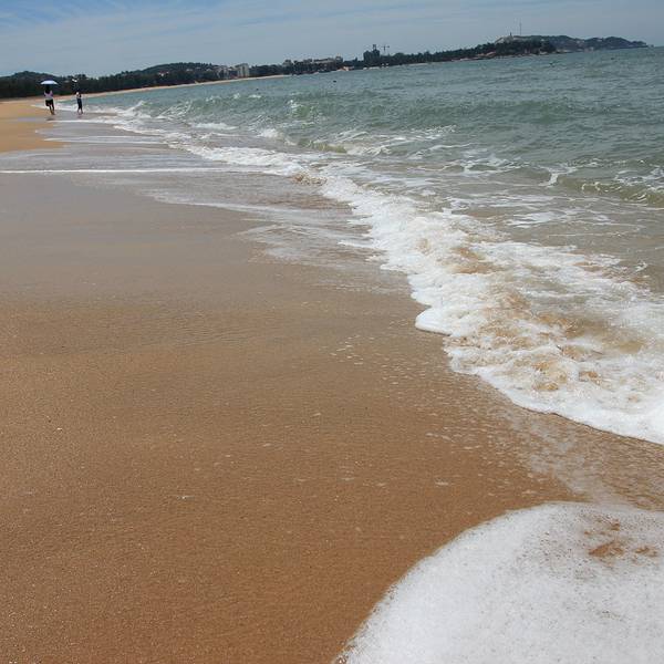 湄州岛海岸线有三十余公里长,最知名的沙滩就是九宝澜黄金沙滩,位于湄洲岛西南突出部,被誉为“天下第一滩”。前临碧波万顷,后枕绿茵千畴。这就是岛上有名的金海岸,金色的沙滩绵延数公里,宽敞平坦。这里的沙...