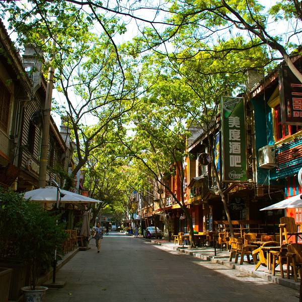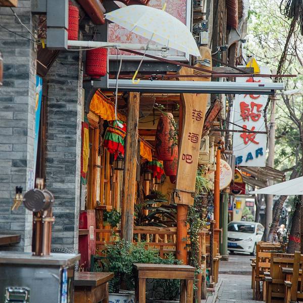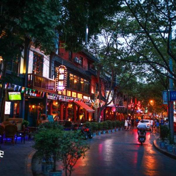 德福巷是一条充满着小资情调的街道。不到200米长的街道上,一家接一家地开满了大大小小的咖啡屋、酒吧、茶馆,名字都起得很雅皮,很有小情调。