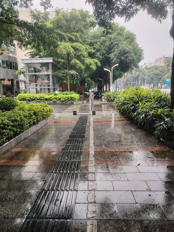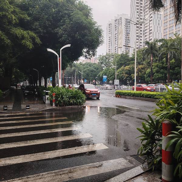 刚下过雨的南宁街头,民族大道上,清新空气里夹杂着树叶的香气,还有花香,心情都跟着愉悦起来。
