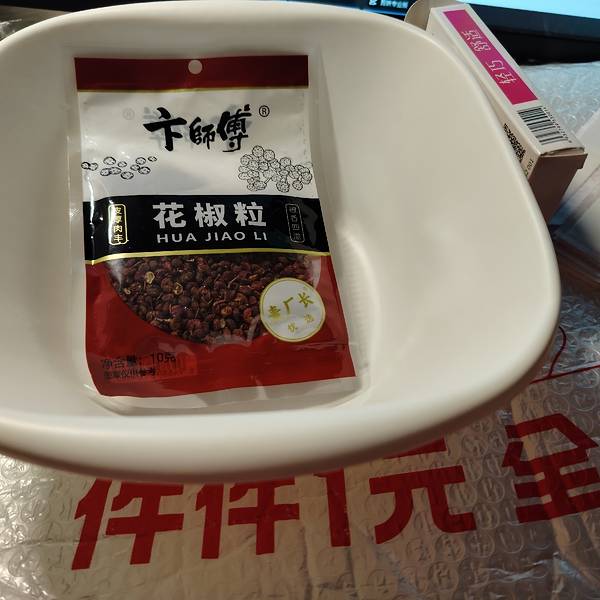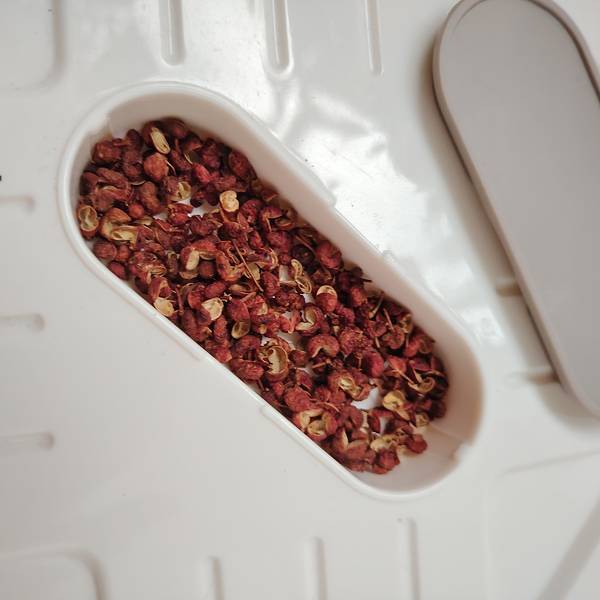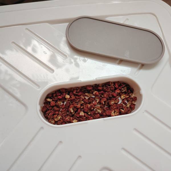 买了一包花椒粒,没有用来做菜,是用来驱虫的,放在储物桶上面的格子里。