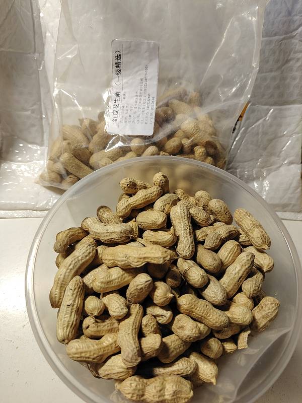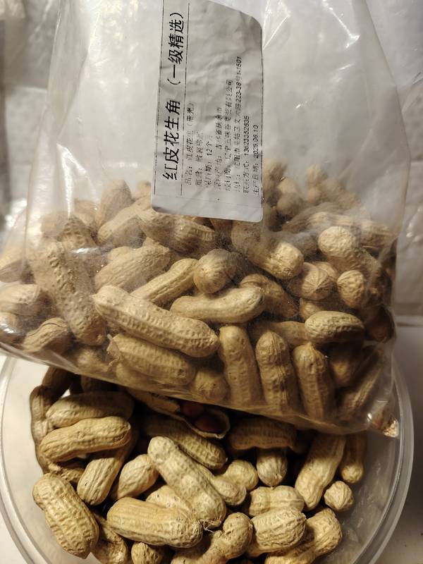 趁着618,在支付宝买了一斤红皮花生,东北的,很便宜。
