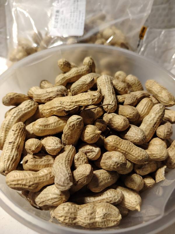 打开看到一大袋,晒得很干,每颗基本都是4颗花生的,现在还是没有味道的,怎么吃好呢?
