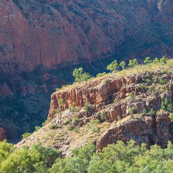 麦克唐纳山脉东西绵延数百公里,奇迹般崛起于爱丽丝泉两侧。在这里可以看到经过数亿年风吹日晒和冰川侵蚀后形成的沟壑、峡谷和岩洞,赭红色的砂岩中生存着各种珍稀的动植物,如果运气好还能看到袋鼠在峡谷陡峭的山谷和高大的桉树间出没。